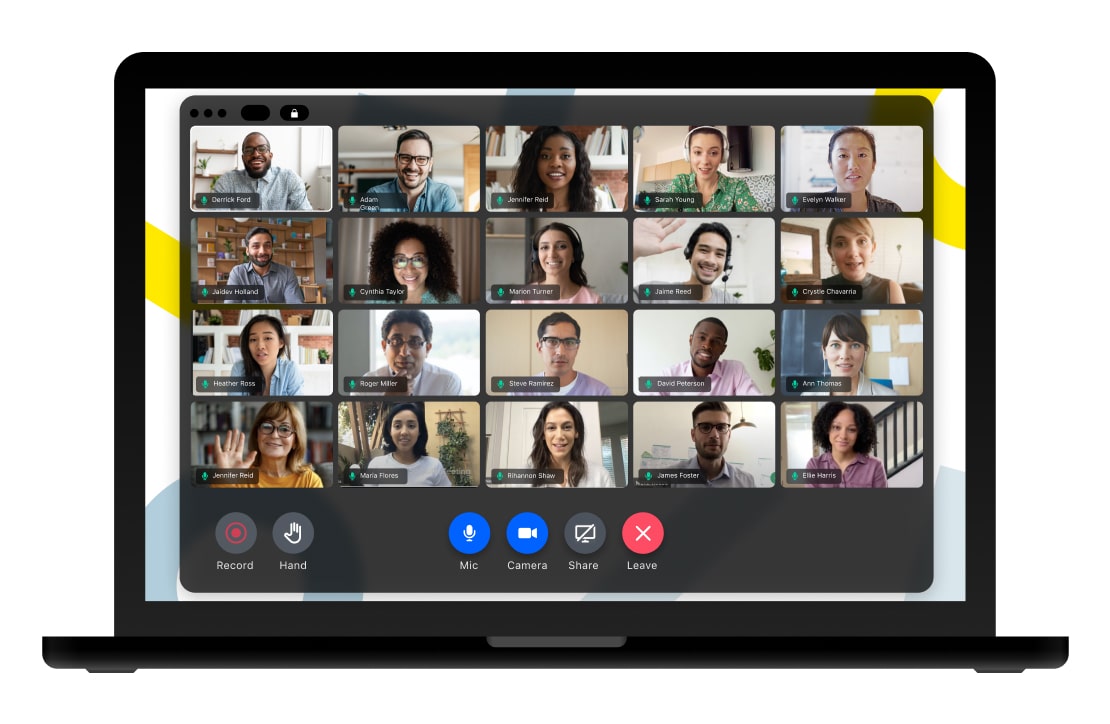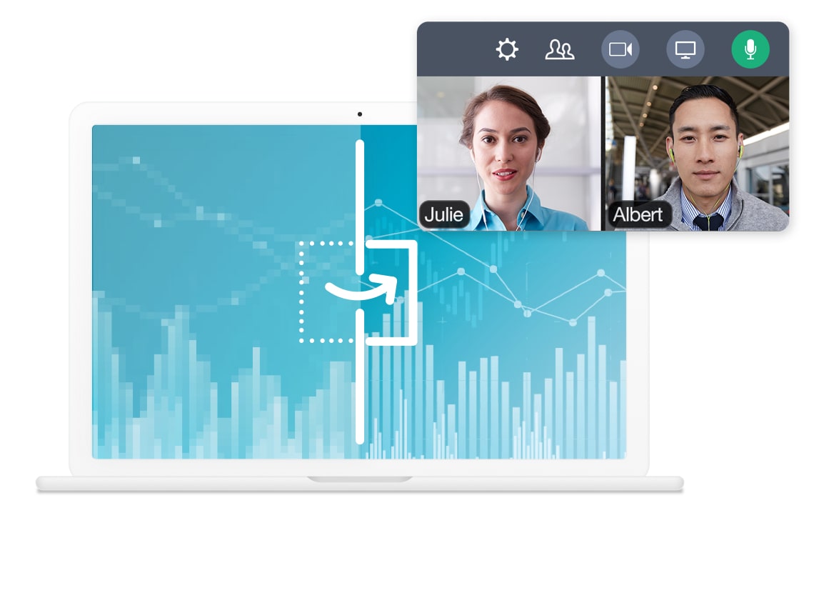 Com o GoTo, você pode se reunir com até 250 pessoas em uma chamada e visualizar os rostos de até 25 participantes simultaneamente. As webcams são exibidas juntamente com o que quer que esteja sendo compartilhado, para que você não perca um só momento da reunião.